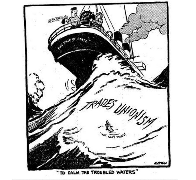 Es un lugar común considerar el Estado de Bienestar y todas las instituciones y mecanismos que se derivan de él como una conquista de la clase obrera, lograda al precio de grandes luchas y sacrificios. Estos párrafos, escritos en 1937 por el comunista belga J.B. Mélis y que forman parte de un artículo más extenso (Los sindicatos obreros y el Estado capitalista), nos ofrecen una visión completamente distinta de todo ese proceso, que, desplegándose en medio de la mayor crisis económica conocida, lejos de buscar el bienestar de la clase obrera trataba de «aniquilar las organizaciones proletarias, que suponían una amenaza directa para el régimen cuando las condiciones históricas las empujaban a romper el círculo de la acción puramente reivindicativa«. En esta primera parte se resume este proceso histórico mediante el cual la burguesía logró insertar las organizaciones sindicales en su mecanismo estatal, castrando su contenido clasista y su autonomía y convirtiéndolas en instrumentos al servicio de los patrones, bien mediante la violencia o con métodos democráticos. En una segunda parte se tratará la cuestión de la Seguridad Social y las prestaciones por desempleo.