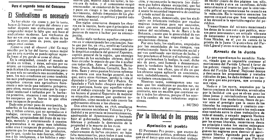Mientras tanto, sostengamos una vez más que los sindicatos no pueden ser, no son, una rémora del progreso, sino por el contrario, son un escalón que conviene subir a todos los obreros, porque él les acerca a la cumbre de sus redentoras aspiraciones.